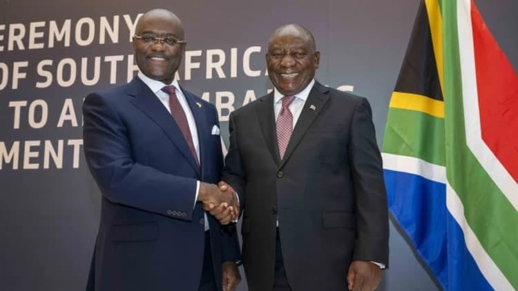 L-R : Dr George Elombi, President and Chairman of the Board of Directors of Afreximbank and South African President Cyril Ramaphosa